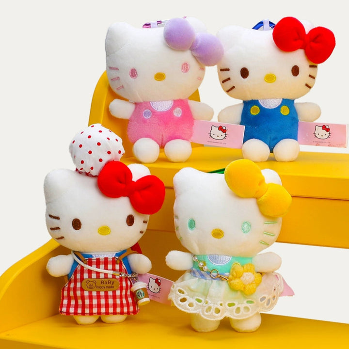 Take your favorite icon everywhere with these Hello Kitty plush keychains, dressed in playful outfits from overalls and bows to retro denim and cargo-core fits. Each mini plush comes with a colorful heart-shaped clip—perfect for attaching to your bags, keys, or phone for a daily hit of kawaii. Soft, collectible, and totally giftable, they’re a must-have for Hello Kitty lovers and Pinkydollz fans alike!