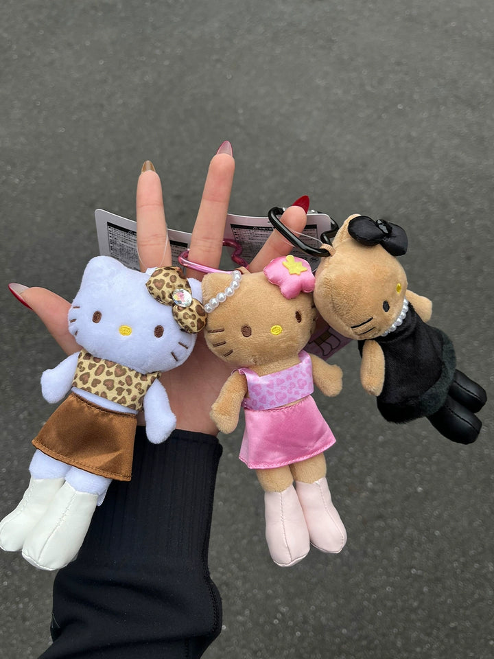 Step out in style with these Hello Kitty fashion plush keychains, each dressed in trendy outfits complete with mini boots, pearl necklaces, leopard prints, and satin bows. Whether you’re vibing with the glam black dress, soft pink coquette set, or bold leopard look, each plushie is soft, collectible, and full of personality. Clip one to your bag, keys, or phone for a daily dose of fashion-forward kawaii flair!